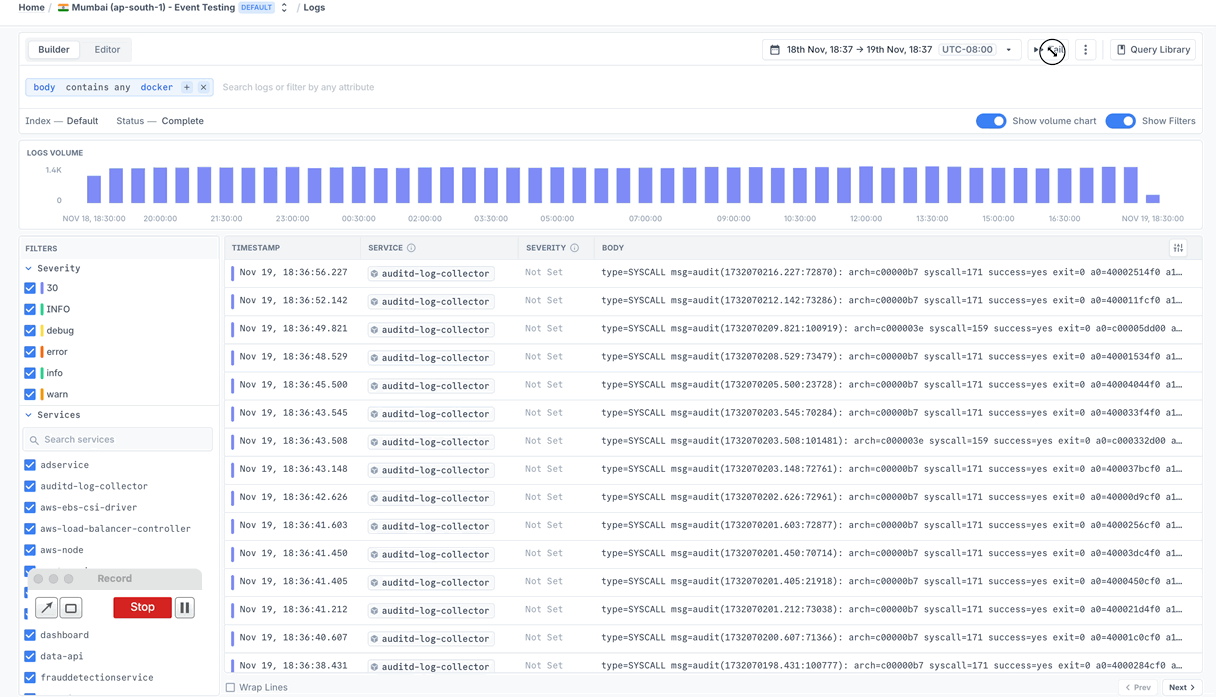Last9’s log analytics gives you a centralized view of logs from all your containers, with support for filtering, querying, and correlating them with metrics and traces.