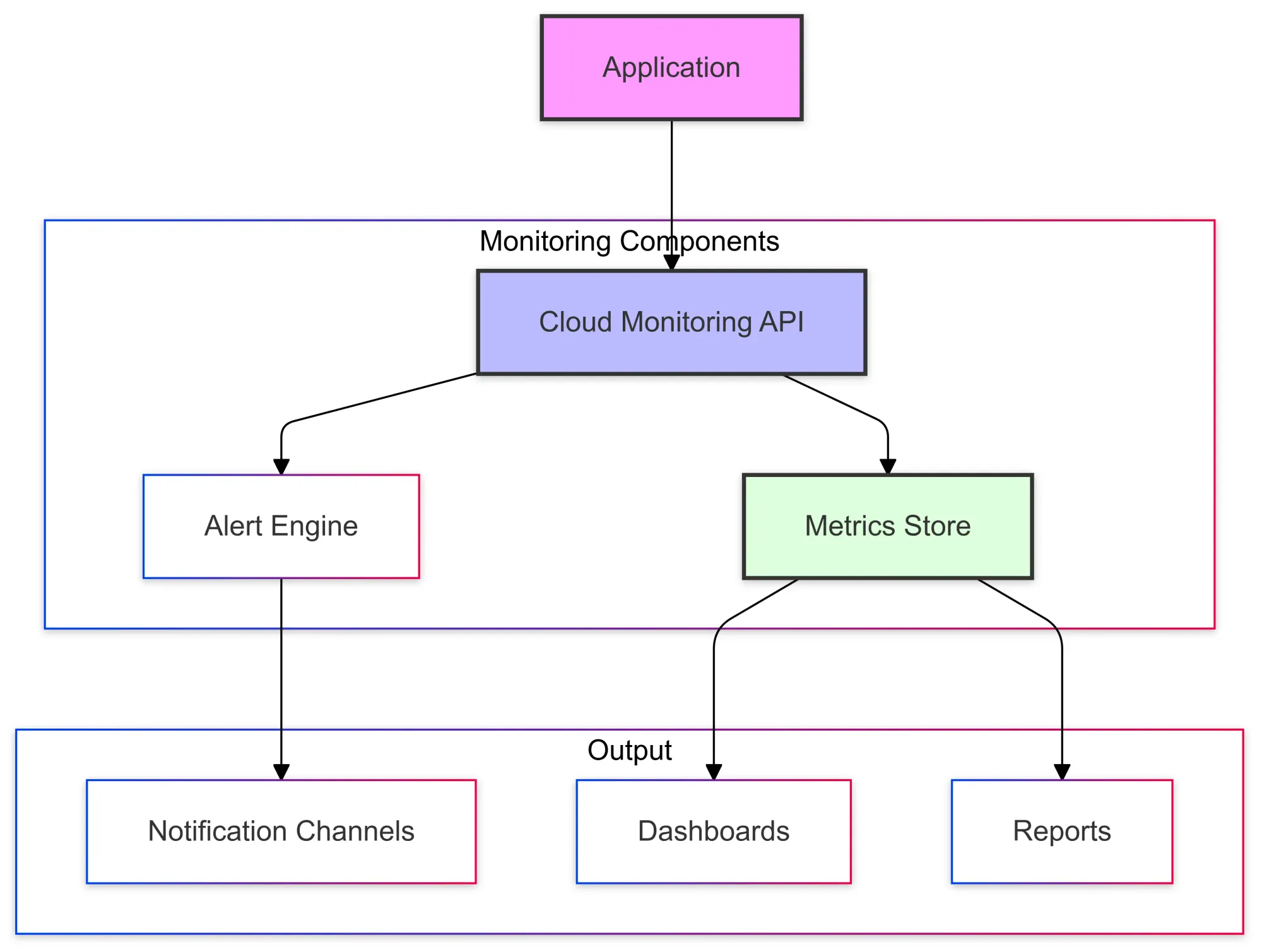 - Cloud Monitoring: Tracks metrics, uptime, and resource health.