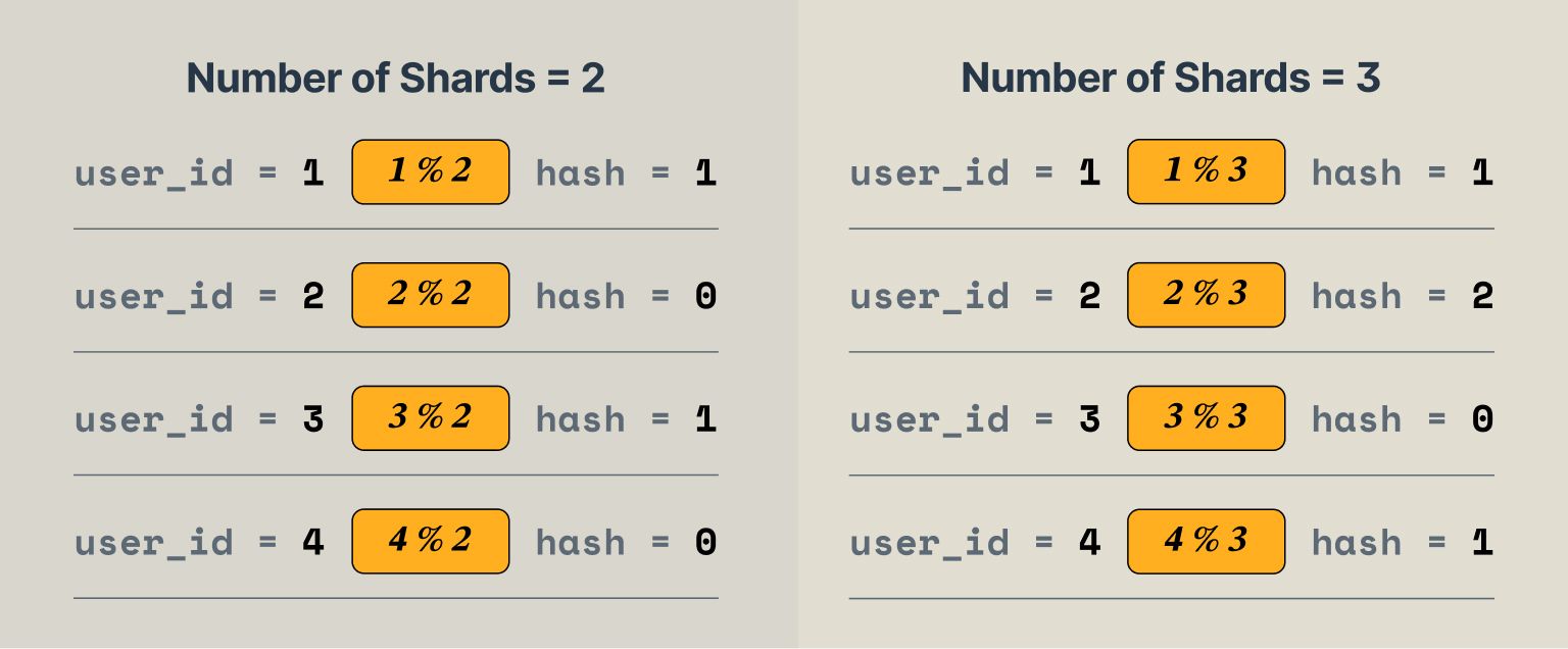 For example, let’s say we aggregate avg_user_session and use the user_id as the shard key. We have two shards, and we use a simple modulo function to distribute the data: user_id % num_shards.