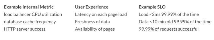 Of course, you're now thinking about how to choose these indicators accurately. Even though good load balancing might impact latency experienced by a user, it's still several steps away from a user's experience. Many metrics contribute to latency and trying to ensure your SLO caters to them all will cause too much noise. Instead, you can consolidate typical user experiences into metrics that are directly applicable to their happiness: