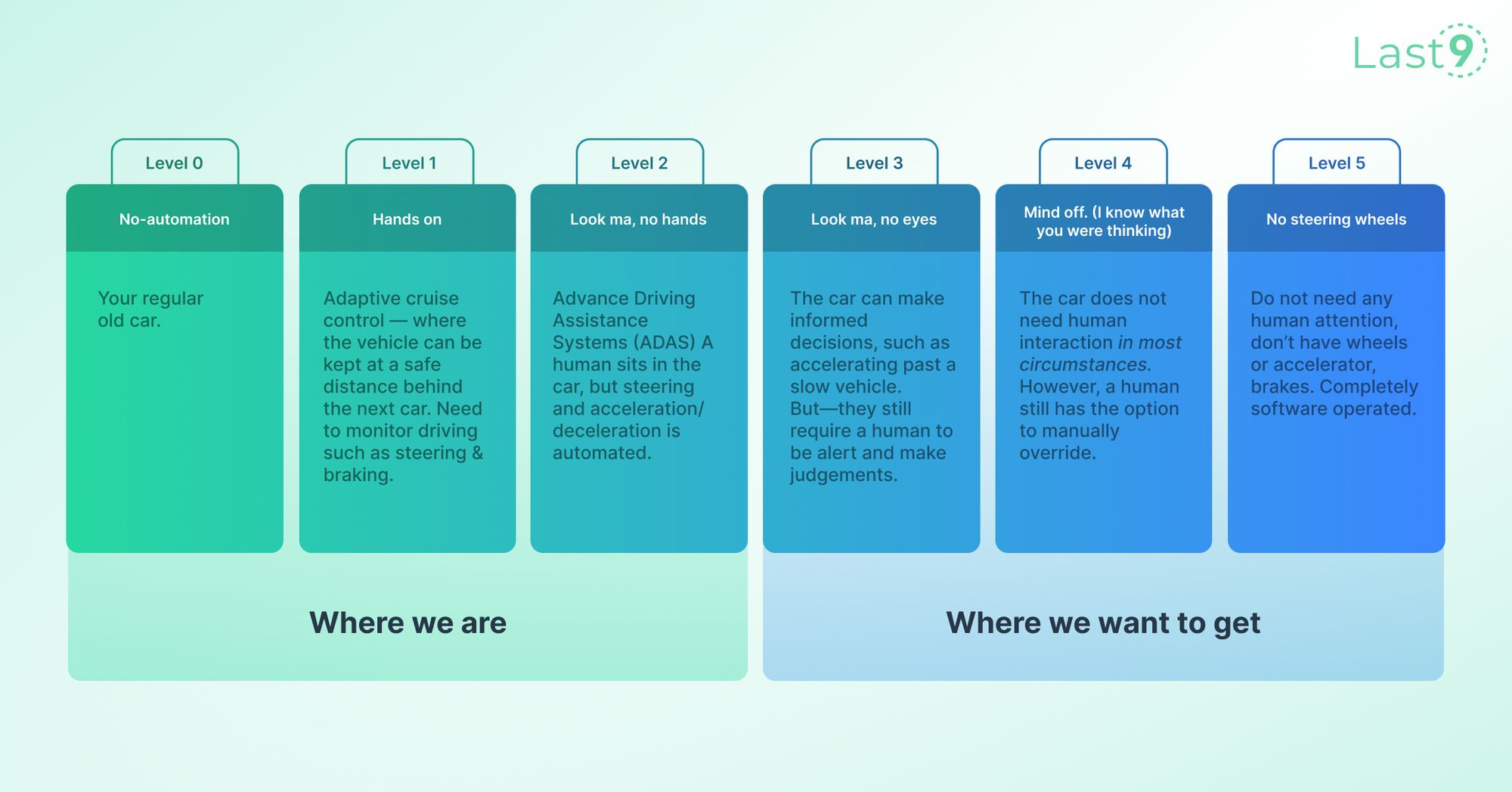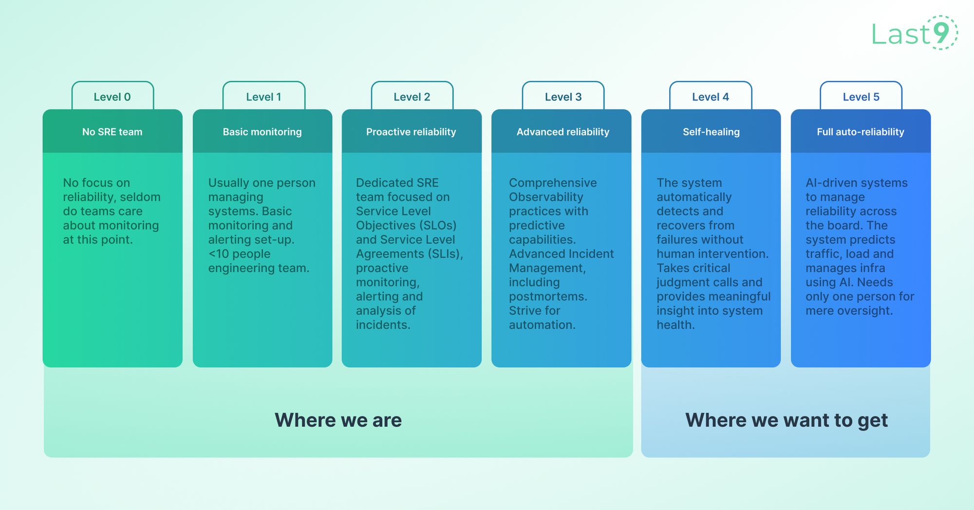 Comparing the different levels of self-driving cars and SRE.