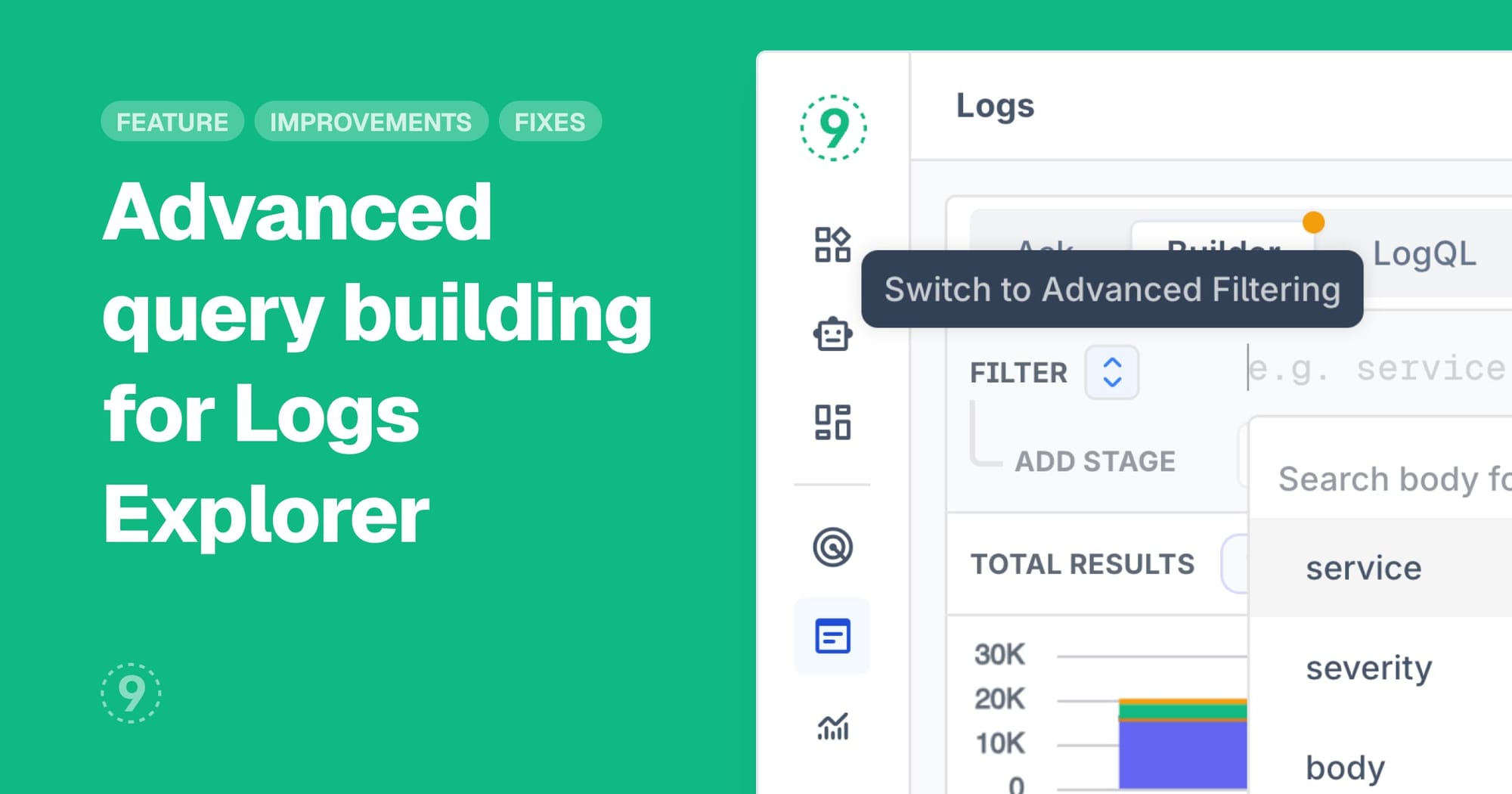 This makes it easier to find exactly what you're looking for, whether you're debugging errors across different services or filtering logs with intricate conditional logic.