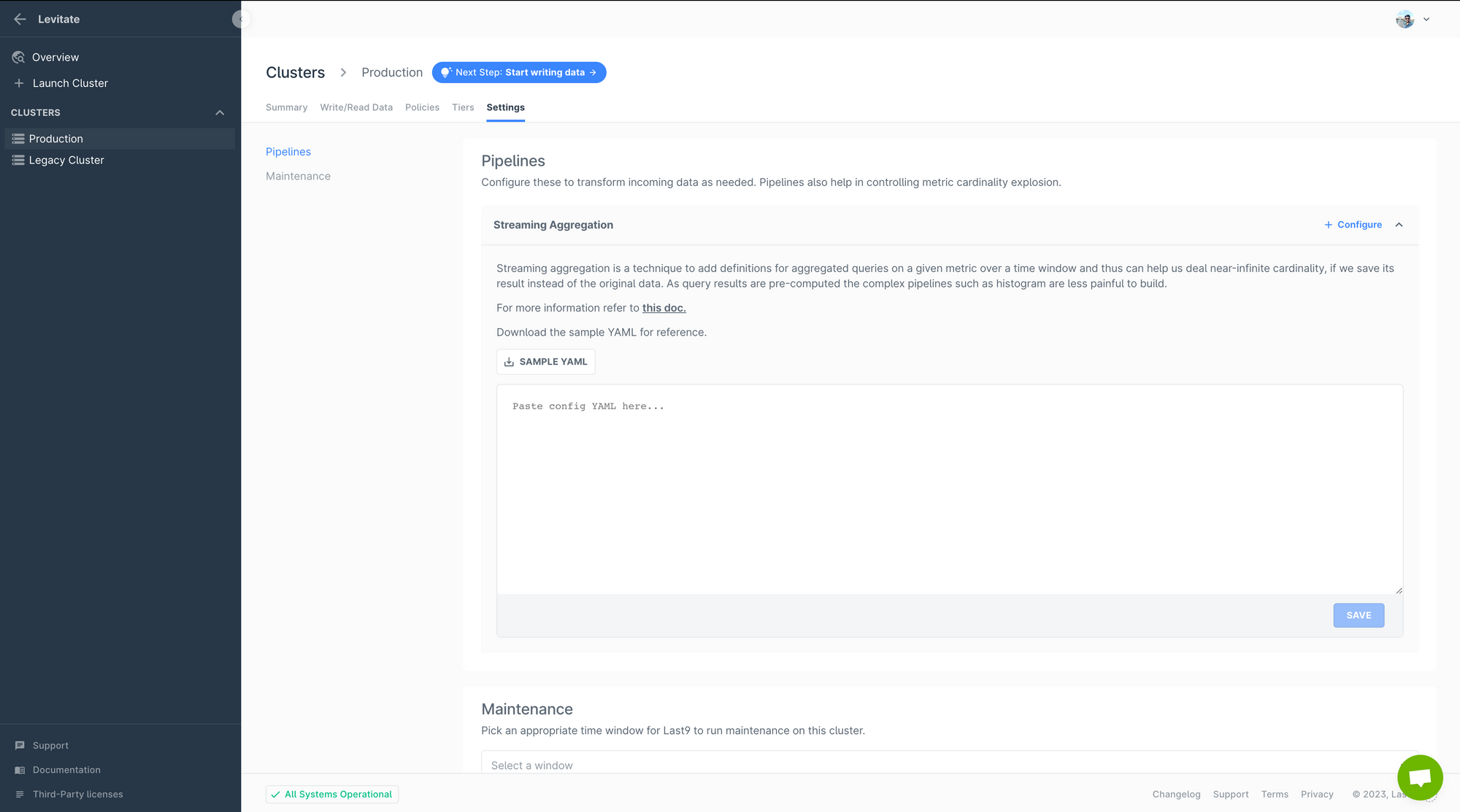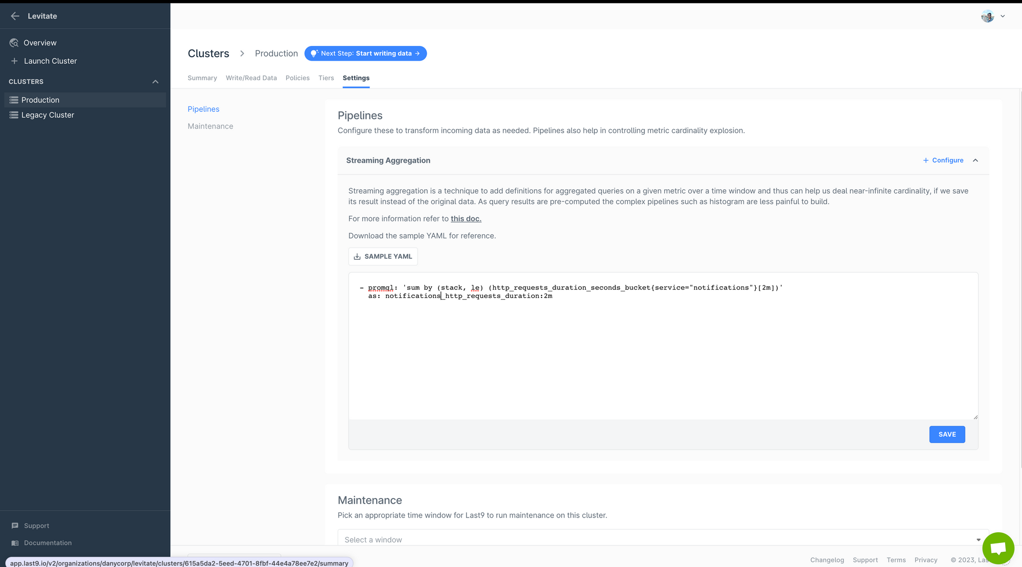 With today's release, the Streaming Aggregation Editor is available for each Last9 cluster. Just head over to your cluster, click on Settings and you will see the editor in action.