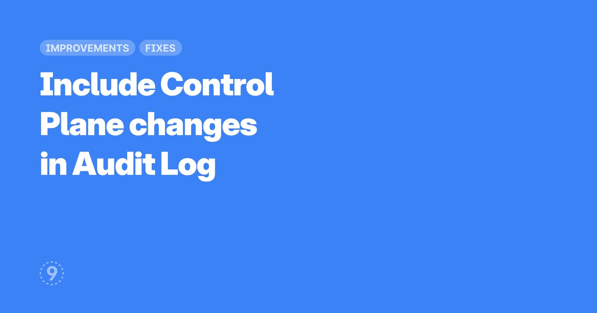 - Any configuration changes done in the Control Plane are now logged in the Audit Trail, either through the UI or the APIs.