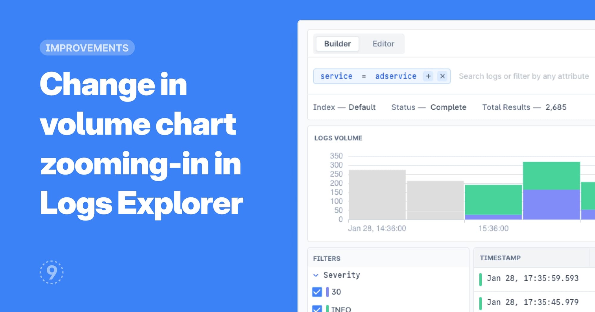 - In Logs Explorer, you can now choose to narrow search results or update the selected time window as well while zooming on the volume chart:
