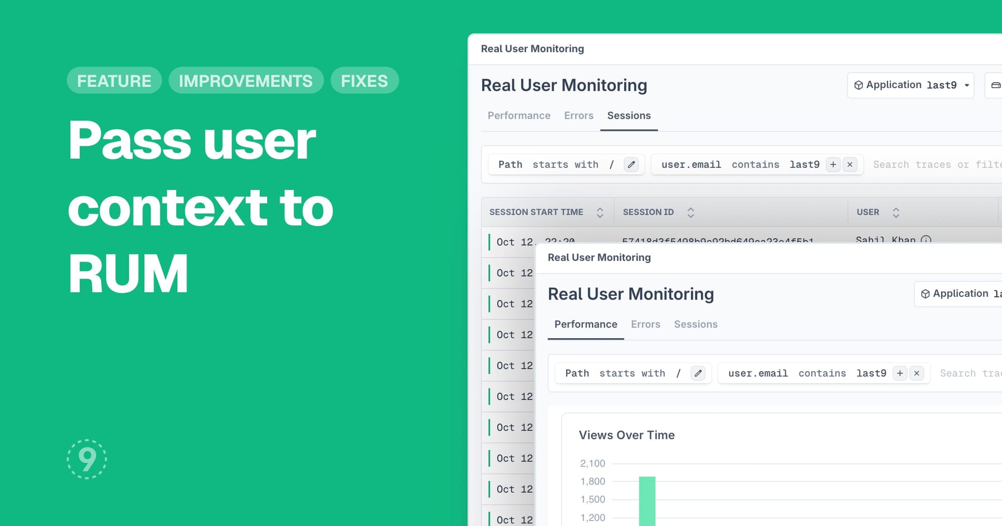 Real User Monitoring now lets you pass user context to your sessions, connecting errors and performance data to specific users. When you identify users in your RUM data, you can see their complete session history, including all errors, performance metrics, and user interactions.