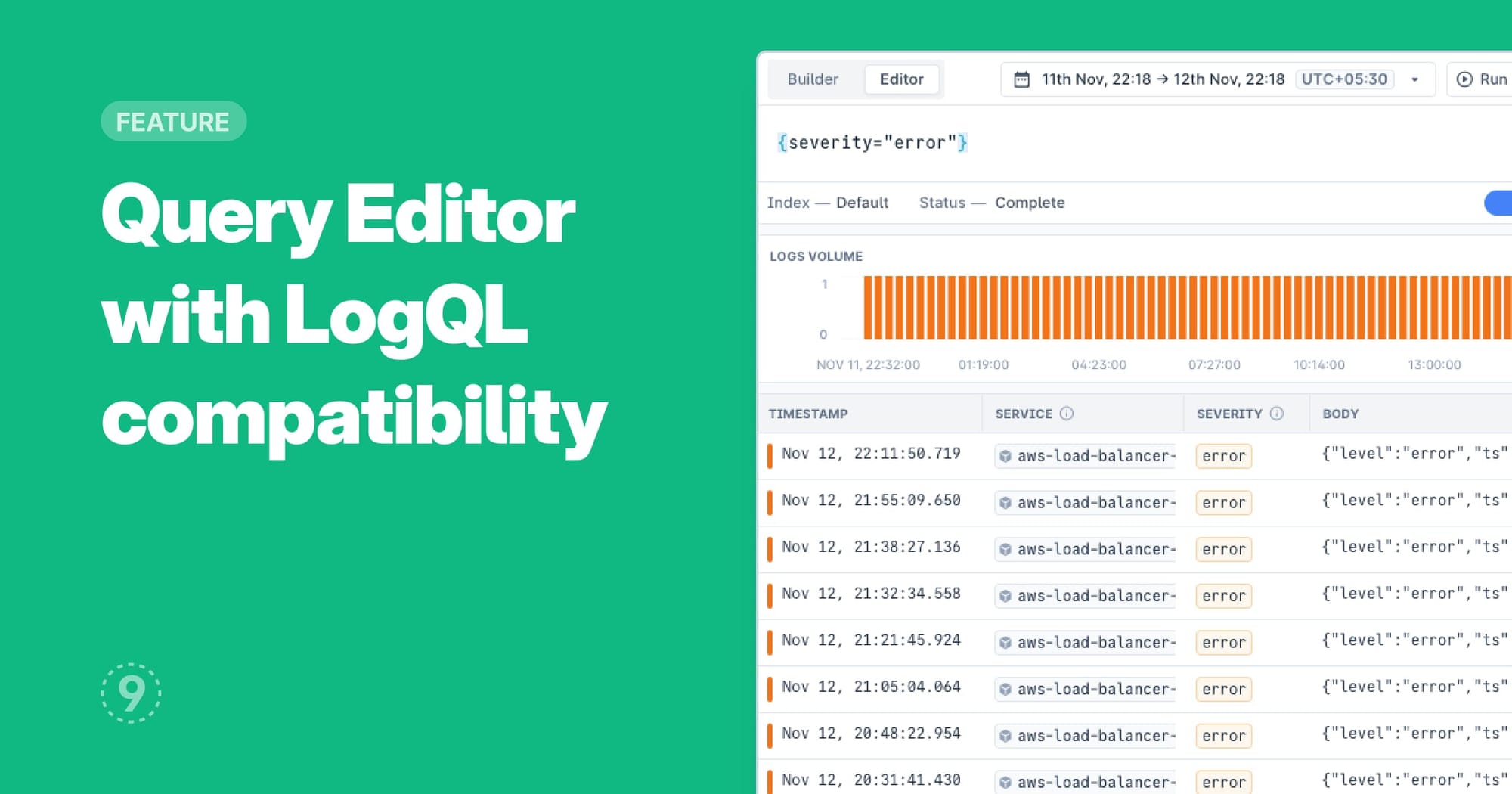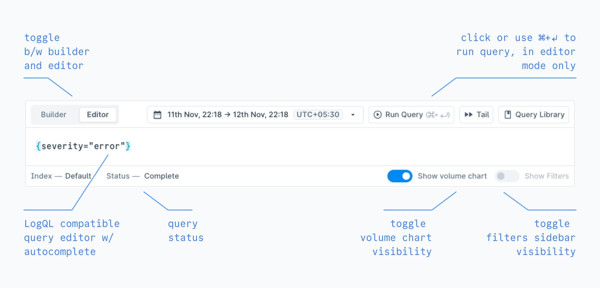Logs Explorer now features a LogQL-compatible Query Editor. As we constantly improve the logs experience and onboard more customers, power users have been requesting the ability to write advanced queries directly into an editor. Don’t worry, the Builder you’ve gotten used to is still there.