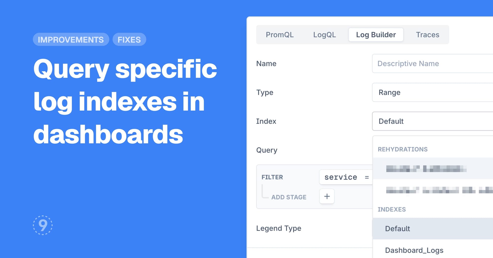 - Physical index support added to dashboard panels enabling users to query logs data from specific physical storage indexes