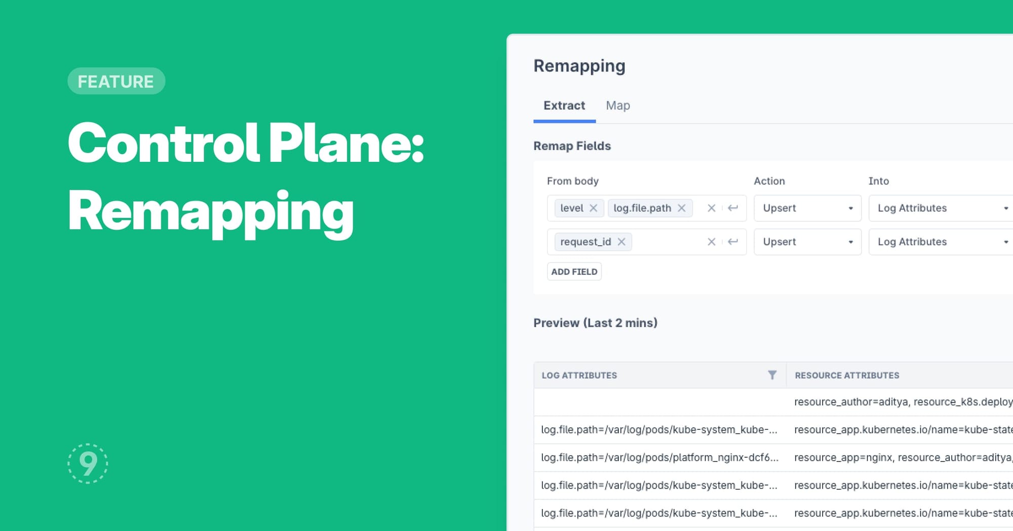 - You can also preview the last 2 mins of ingested log lines based on the extract and remap configurations