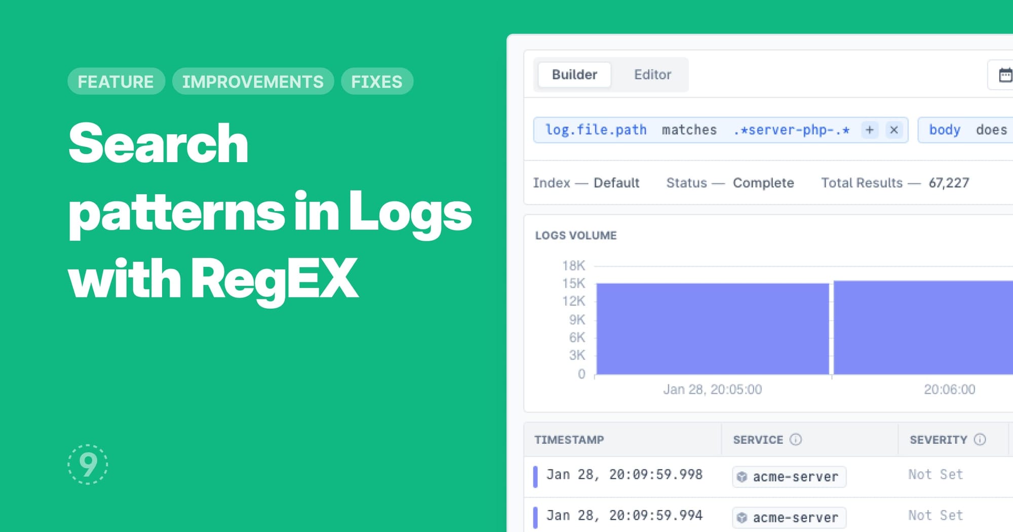 Apart from the “contains” operator and its variants while searching in logs body, you can now use the “matches” and “does not match” operators to use RegEX patterns to search in logs body, giving you more flexible and powerful matching capabilities.