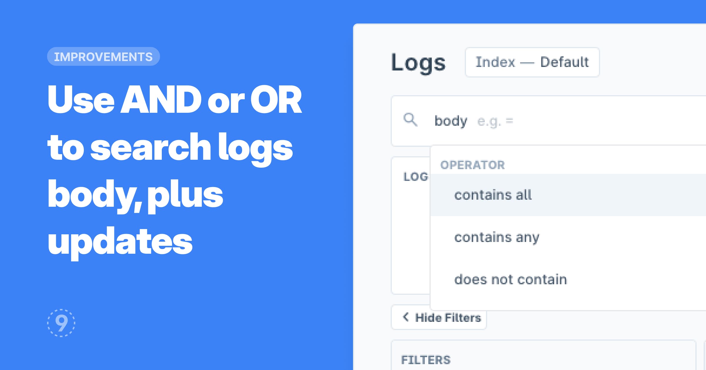 contains allfor AND orcontains anyfor OR operations.- Note: Multiple conditions in the search input have the AND operator applied.