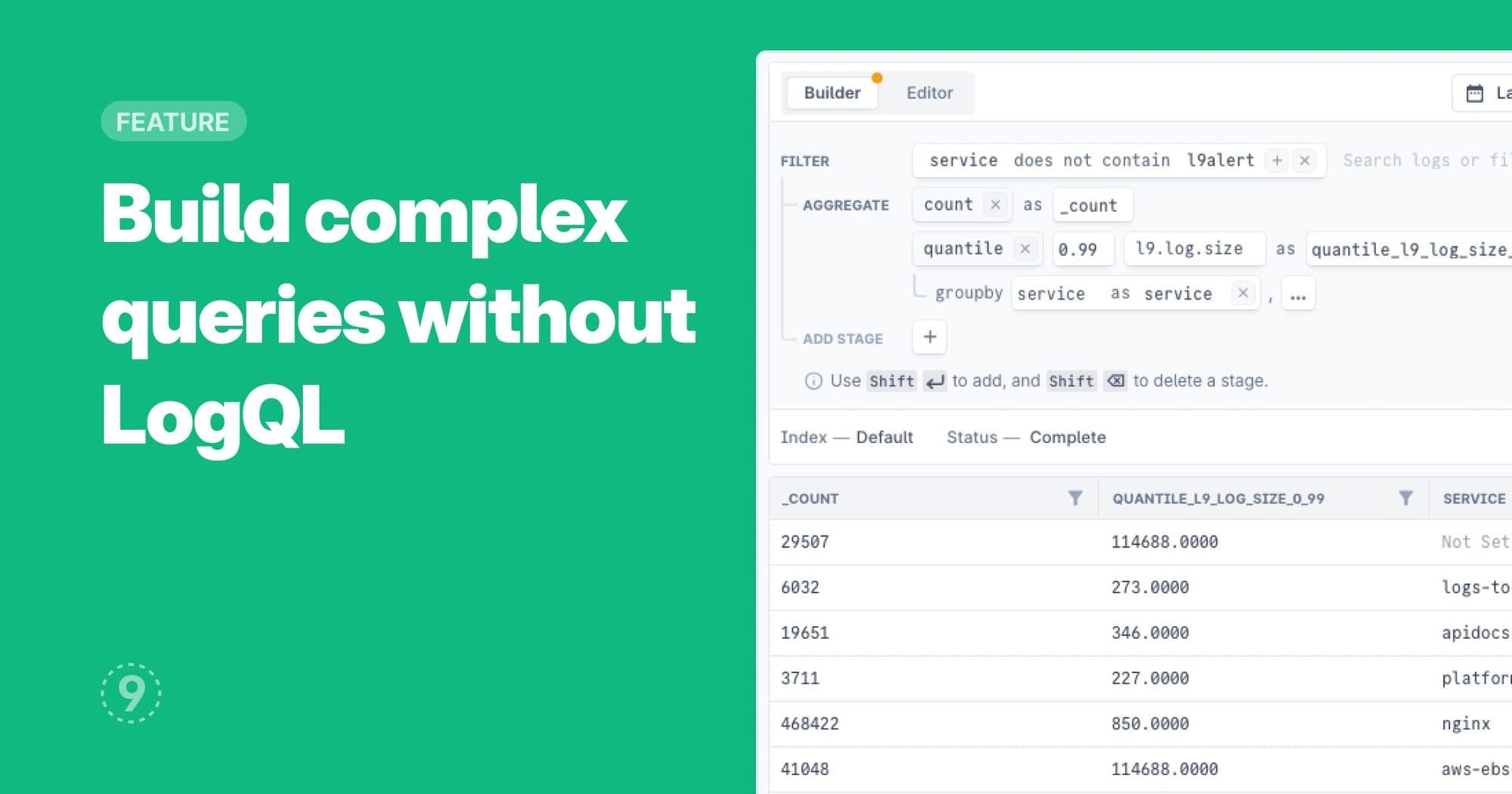 The Query Builder is perfect for teams who want to unlock deeper log insights without the learning curve of LogQL. Whether you're tracking error patterns, analyzing user behavior, or monitoring system metrics, you can now build sophisticated queries through a point-and-click interface.