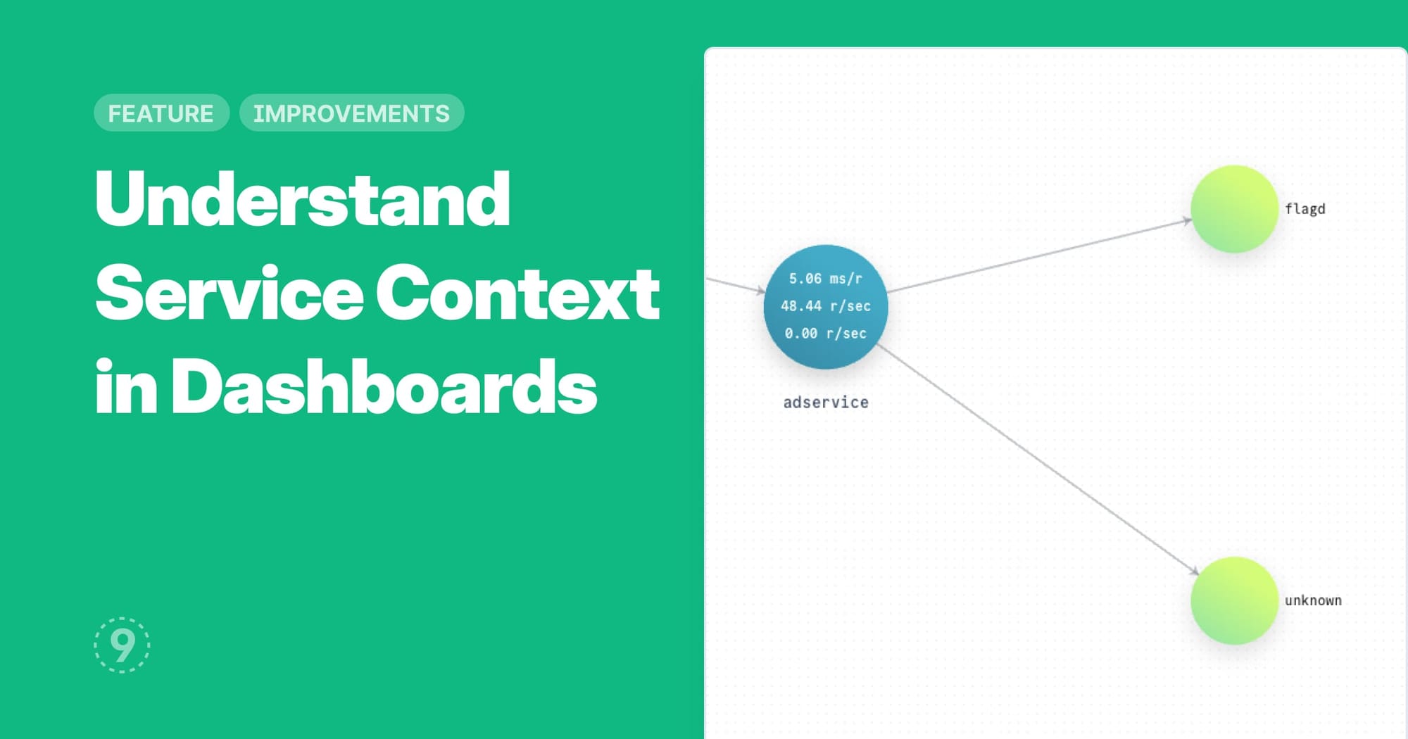 While viewing a dashboard, you can click on the Service Context at the top right to view a service graph with downstream and upstream dependencies of the current service selected in the dashboard. Key metrics like response time, throughput, and error rate are visible on the current service node by default, and you can hover on a dependency node to see the same metrics of the relationship.