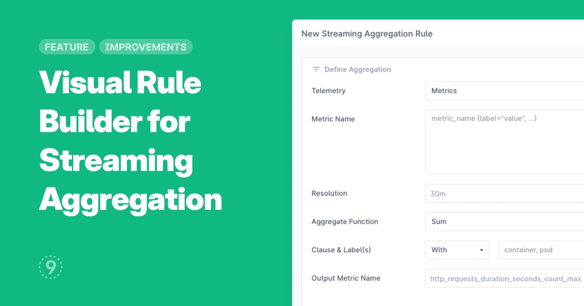 We’ve revamped the experience for configuring and maintaining Streaming Aggregation rules in the Control Plane. For teams using the GitOps workflow, nothing changes. But for teams preferring the UI, this makes adding new rules and editing them much much simpler — point and click with autocomplete dropdowns instead of having to wrangle a YAML config.